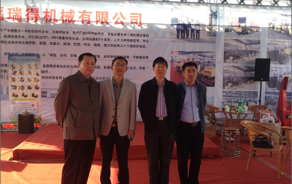 中國建筑機械協會會長張小軒在福瑞得機械產品展位親切交談,對我公司生產的小型壓路機系列:瀝青路面修補設備溪流:激光攤鋪設備給與高度評價,對于我公司成功承辦2015全國秋季建筑機械交易會給與肯定。
