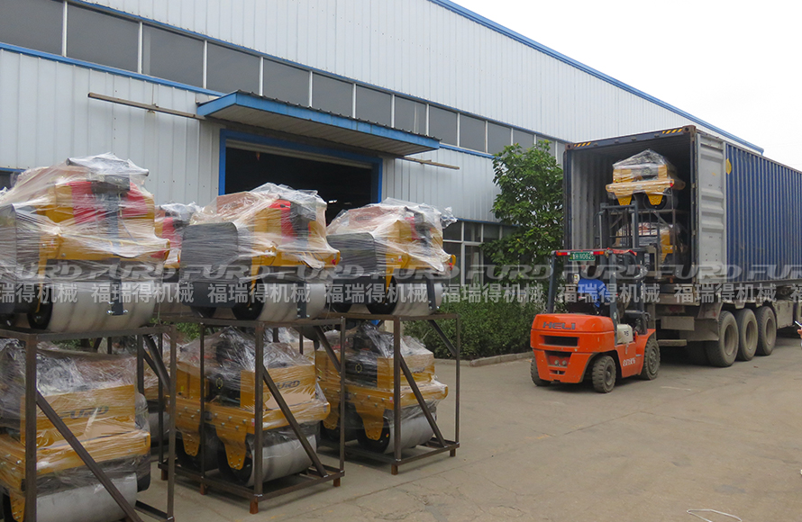 10月25日,福瑞得機械46臺手扶雙鋼輪壓路機裝車出口墨西哥。
